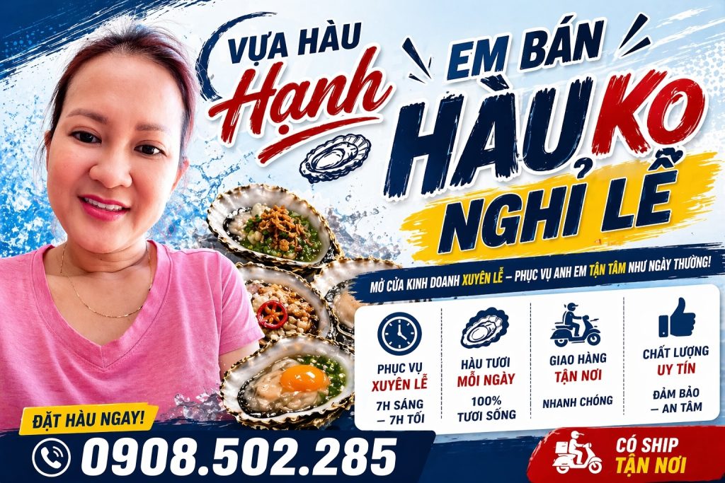 Cửa hàng Hàu Hạnh bên 100 Võ văn kiệt,p.Ng Thái bình,q1